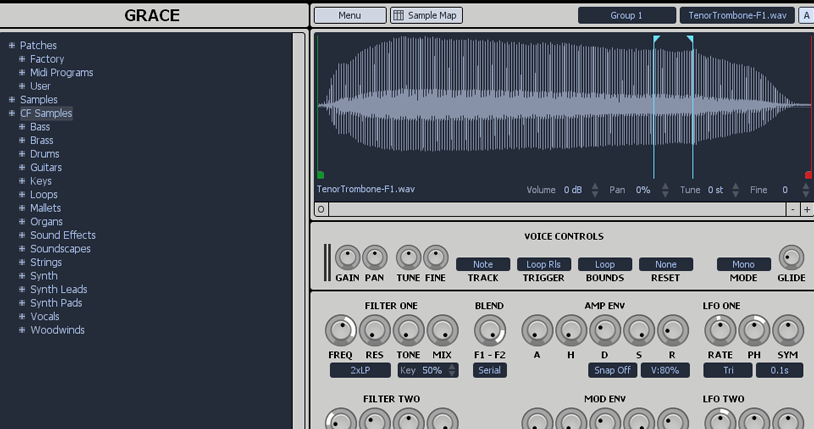 Designed for expressive playing, careful attention was payed to the way 'velocity' and 'pitch bend' effect the filters, also the reverb has been configured to compliment the saxophone sound.