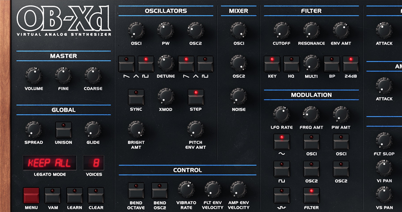 OB-Xd is based on the Oberheim OB-X. It attempts to recreate its sound and behavior, but as the original was very limited in some important ways a number of things were added or altered to the original design. OB-Xd was designed to sound as good and as rich as the original. It implements micro random detuning which is a big part of that sound.