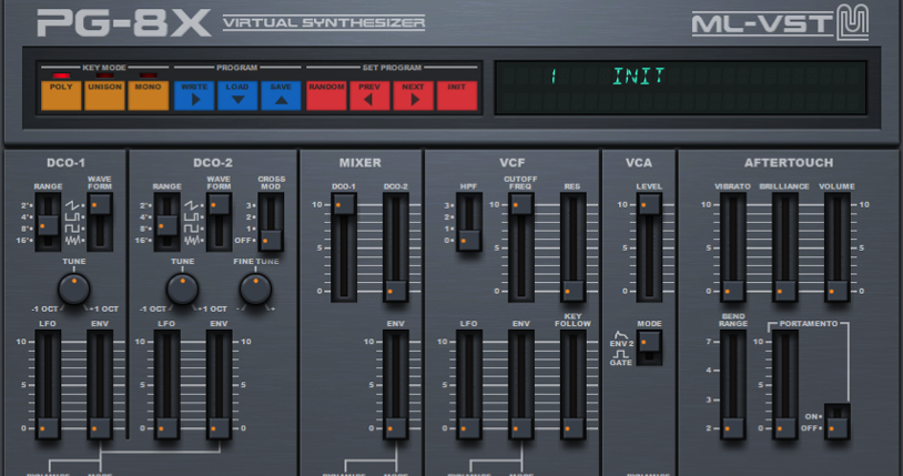 PG8X is a freeware emulation of the legendary Roland JX-8P analog synthesizer, with the standard 2-DCO - 24dB/oct Filter design.