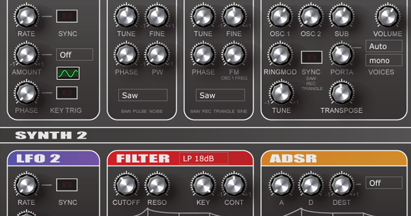 TAL-NoiseMaker is an improved version of TAL-Elek7ro and has a completely new synth engine and a lot of improvements in sound and usability. The synth also includes a small effect section with a reverb, chorus and a simple bit crusher effect.