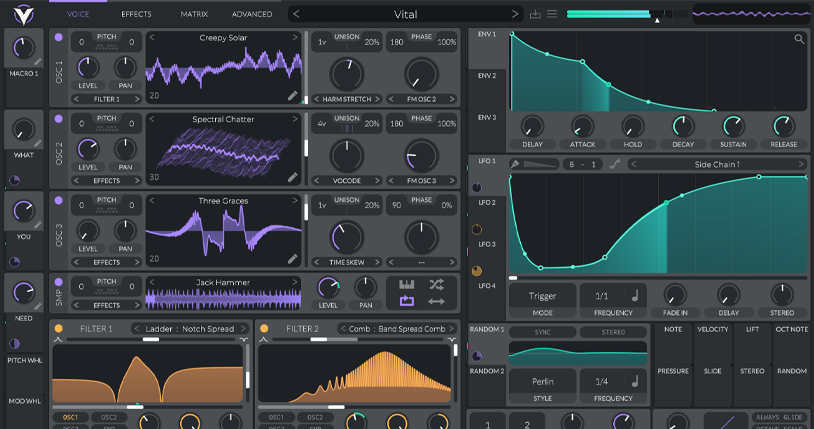 Vital is a spectral warping wavetable synthesizer. Vital has animated graphical displays when you need them. Everything moves in real-time so you can see what’s going on behind the scenes. Quickly design sounds with an optimized drag-and-drop modulation workflow. Experience many high-quality audio effects in a single plugin.
